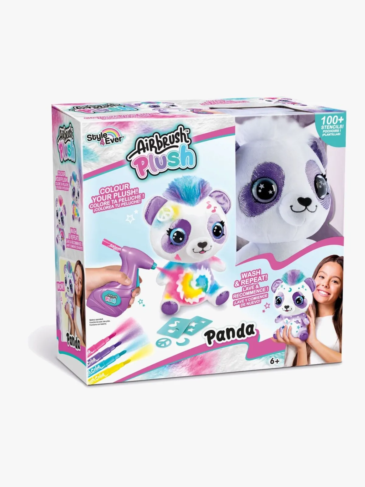 – Indeholder: 1 bamse, 1 airbrush-værktøj, 120 stencilskabeloner, 4 airbrush-tusser.