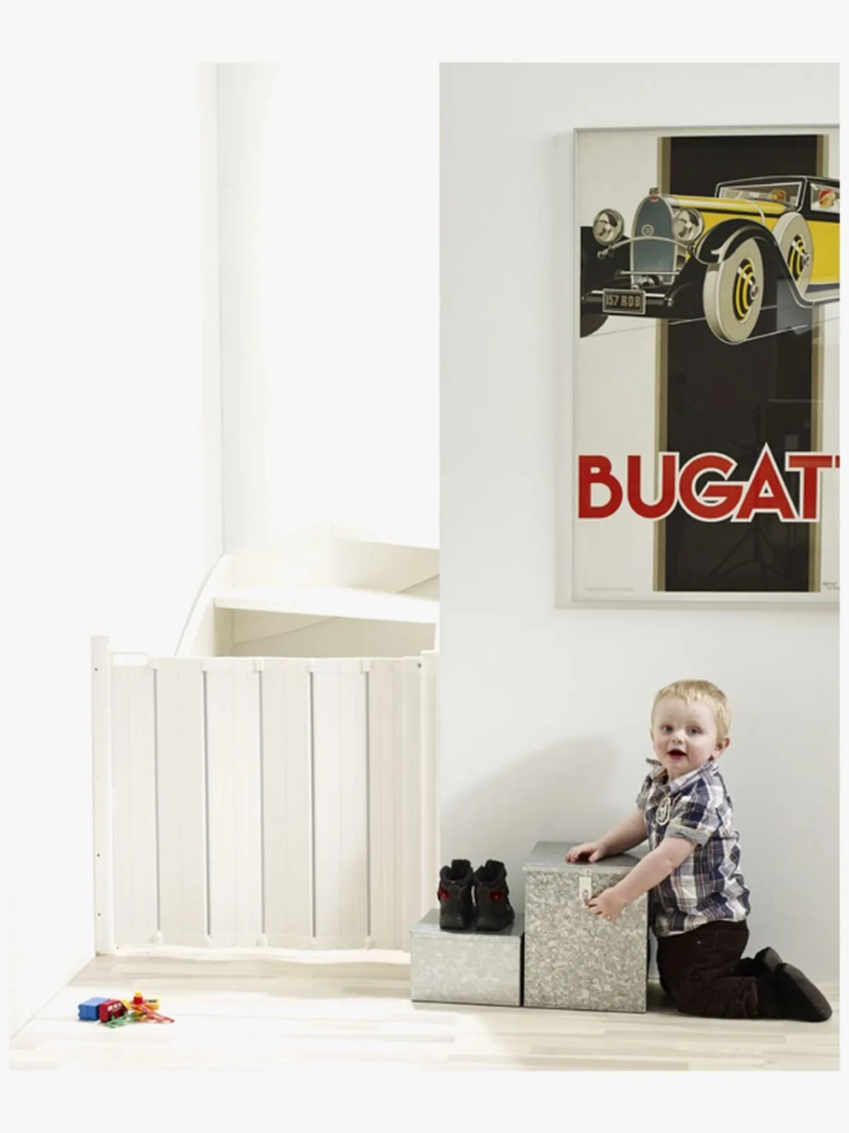 Gitteret er nemt at åbne for en voksen, som blot behøver at anvende en enkelt hånd for at afbryde låsefunktionen. Låsen åbnes i en to-trinsbevægelse, som sikrer at børnene ikke kan låse den op på egen hånd.