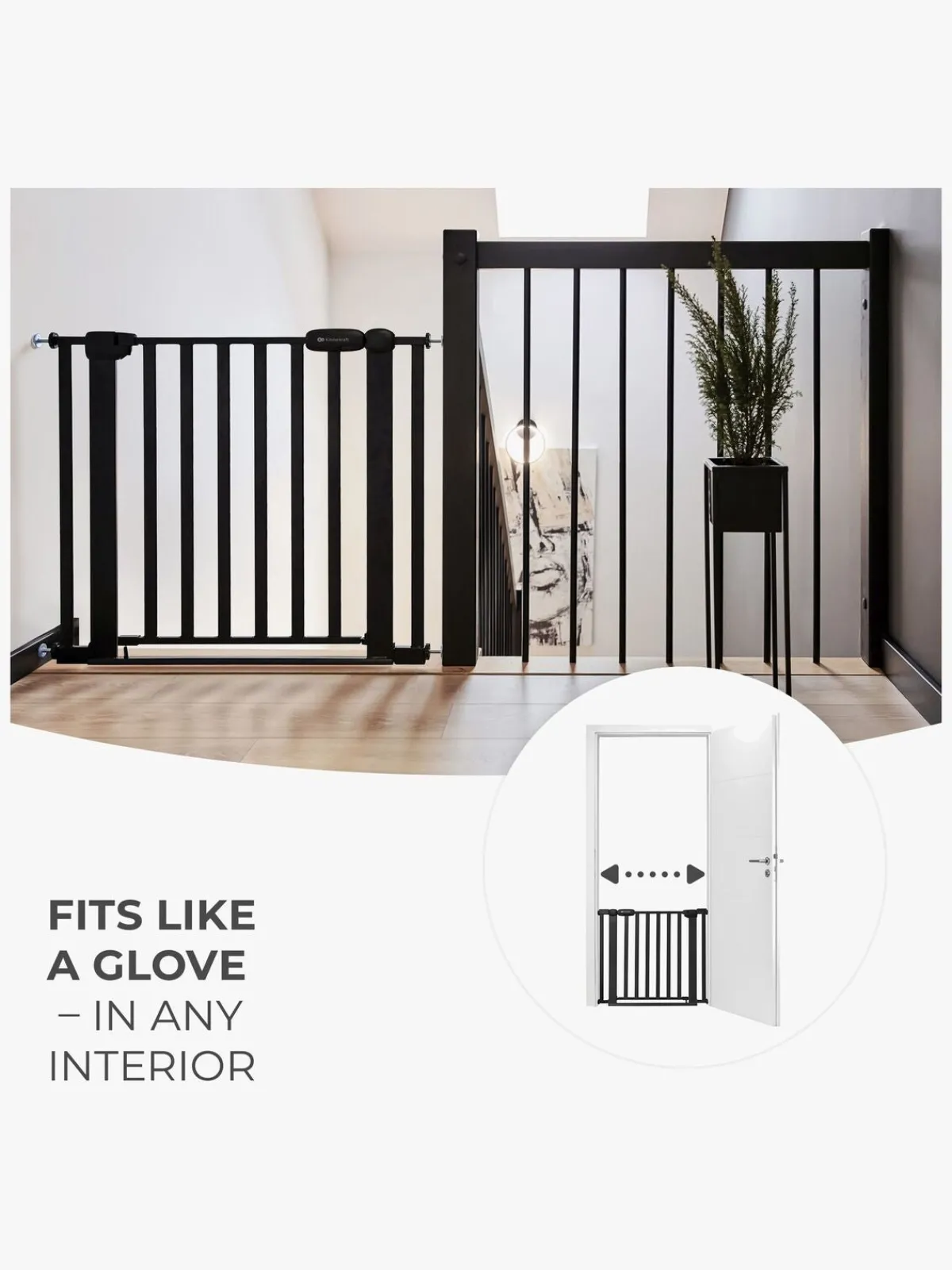 – Passer til åbninger, der er 75-82 cm (75-103 med forlængere).