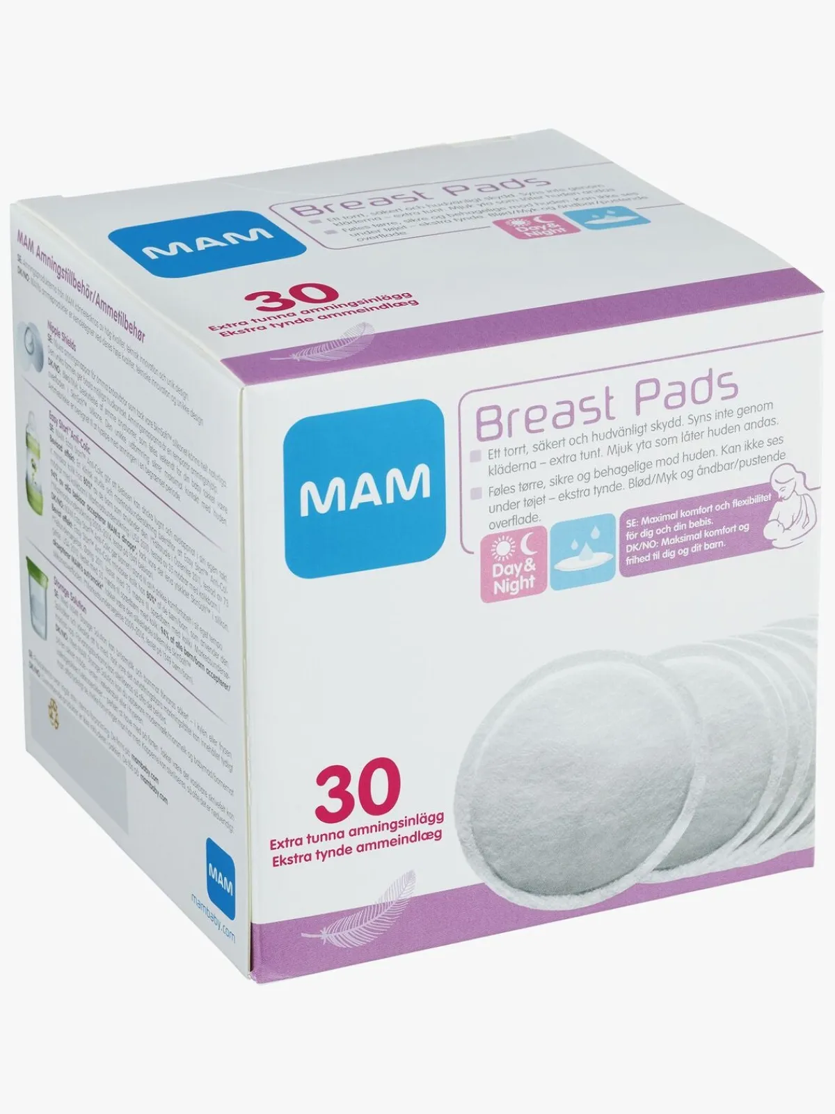 MAMs maksimalt absorberende ammeindlæg er så tynde, at man ikke kan se dem gennem tøjet. Med selvhæftende tape holder de sig på plads dagen lang.