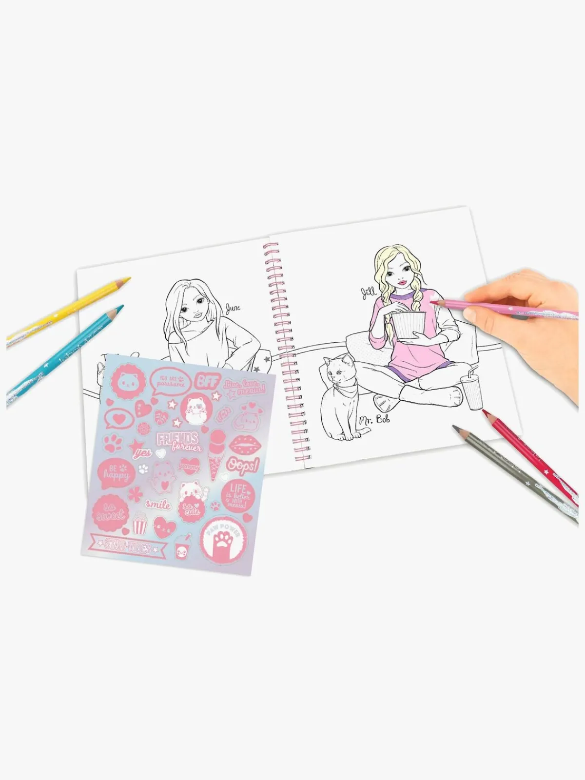 – Indeholder: 1 malebog, 1 klistermærkeark.