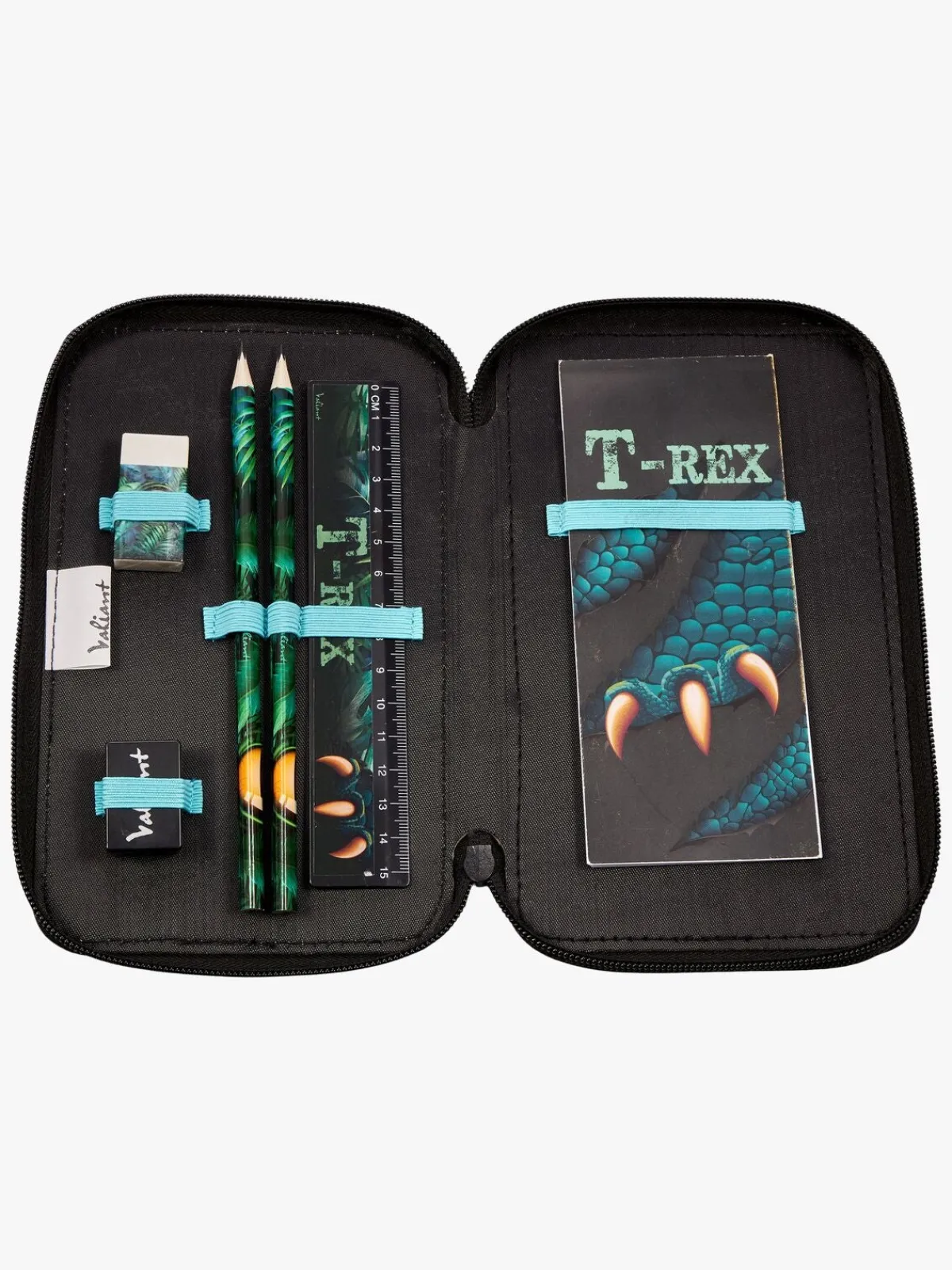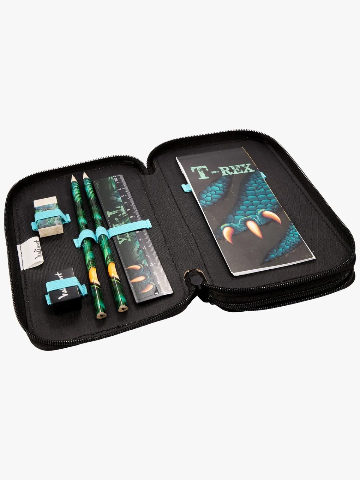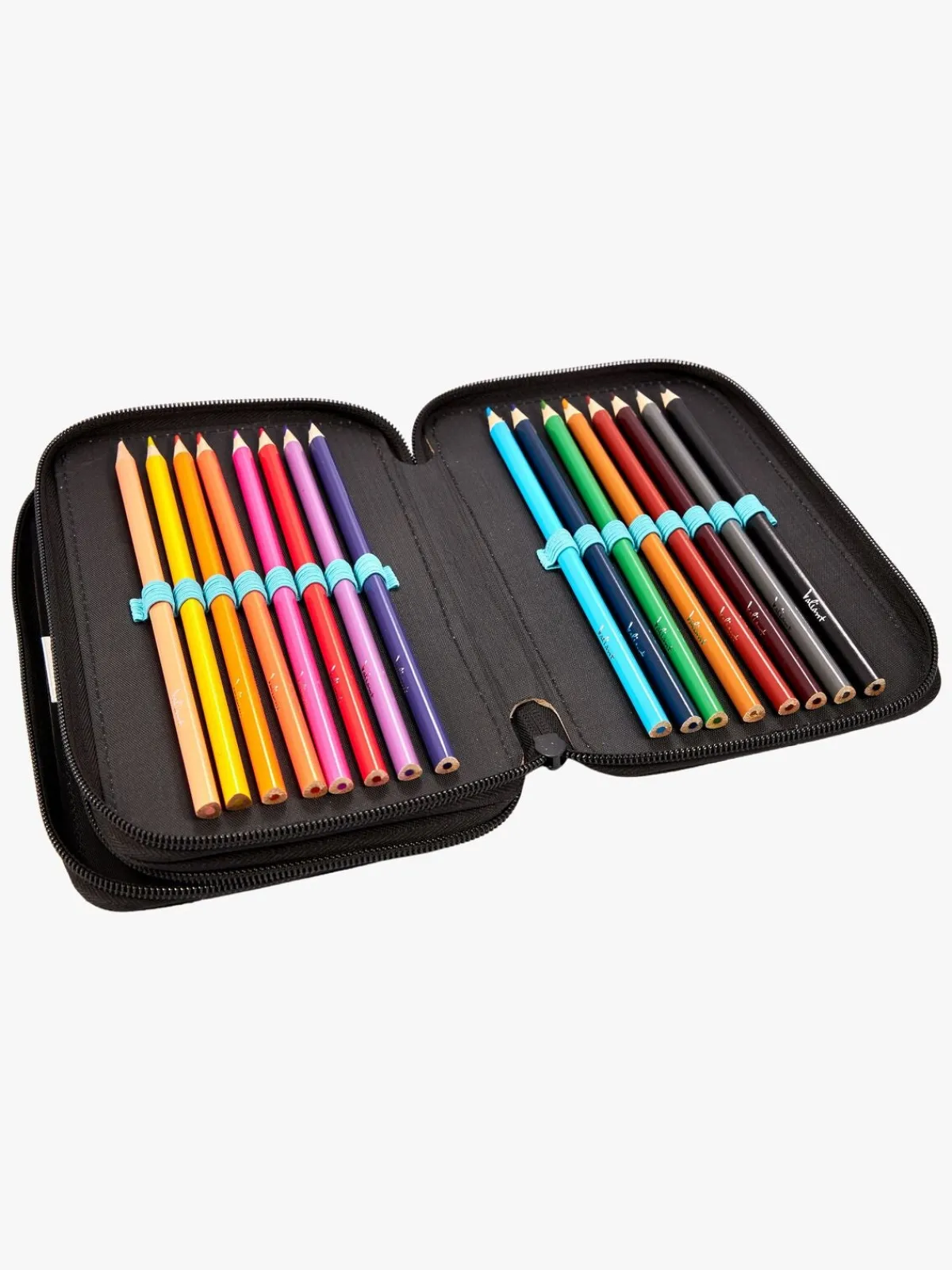 – Indeholder: 1 penalhus, 16 farveblyanter, 1 notesblok, 1 viskelæder, 1 blyantspidser, 1 lineal, 2 blyanter.