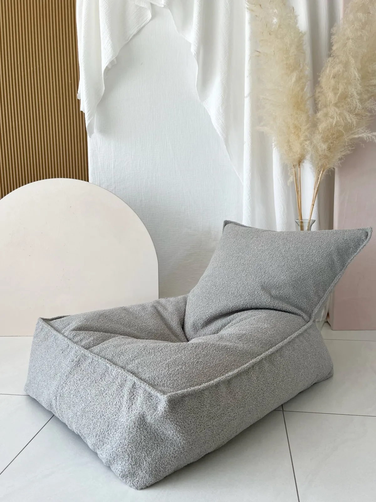 | Materiale | Betræk: polyester bouclé. Fyld: polystyrenkugle. |